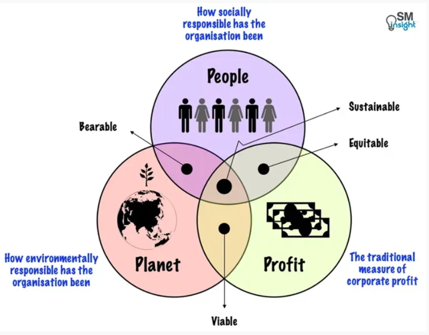 - Profit: Represents traditional business performance, indicating profitability and growth.