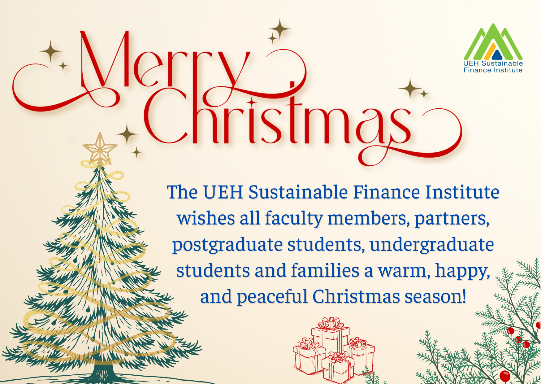 The UEH Sustainable Finance Institute wishes all faculty members, partners, postgraduate students, undergraduate students and families a warm, happy, and peaceful Christmas season!
