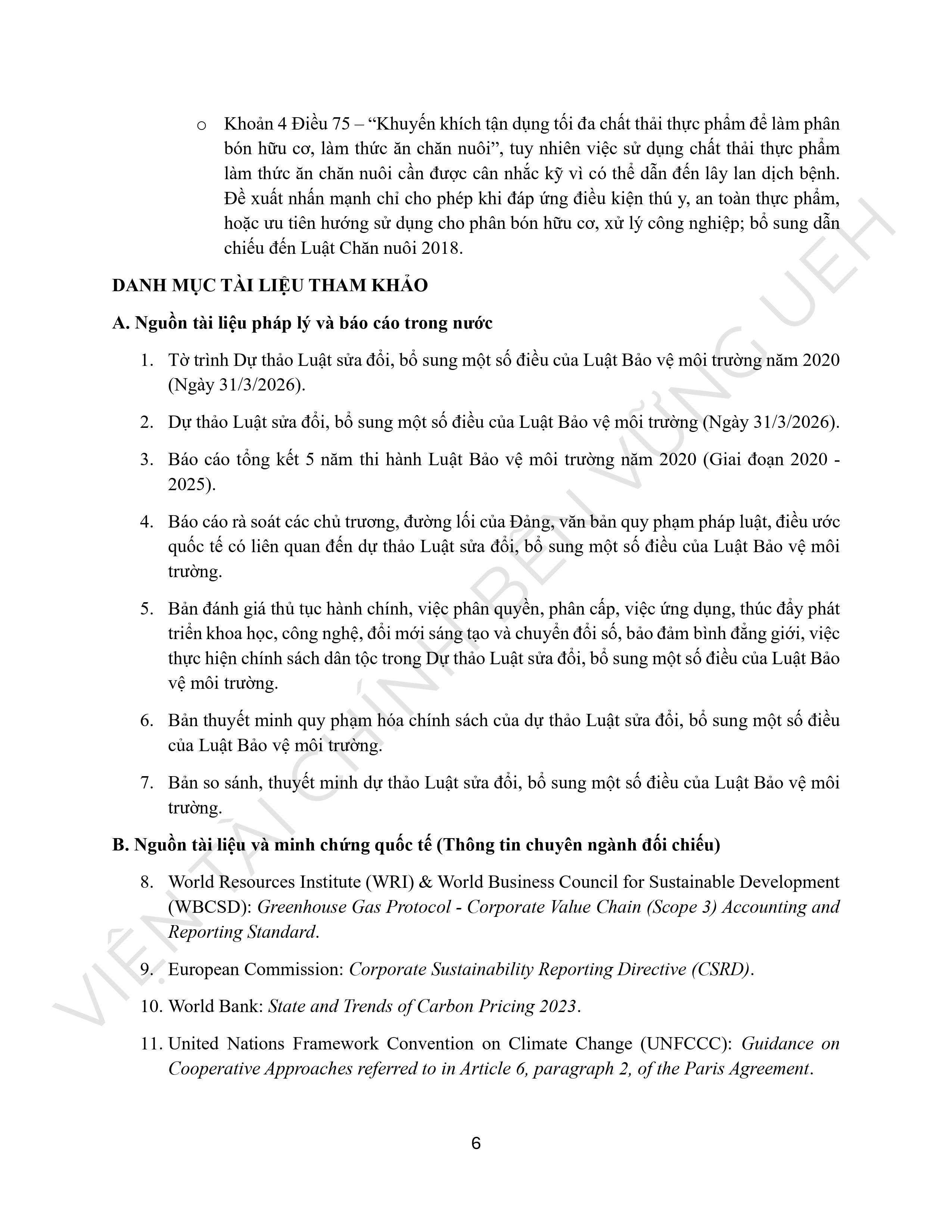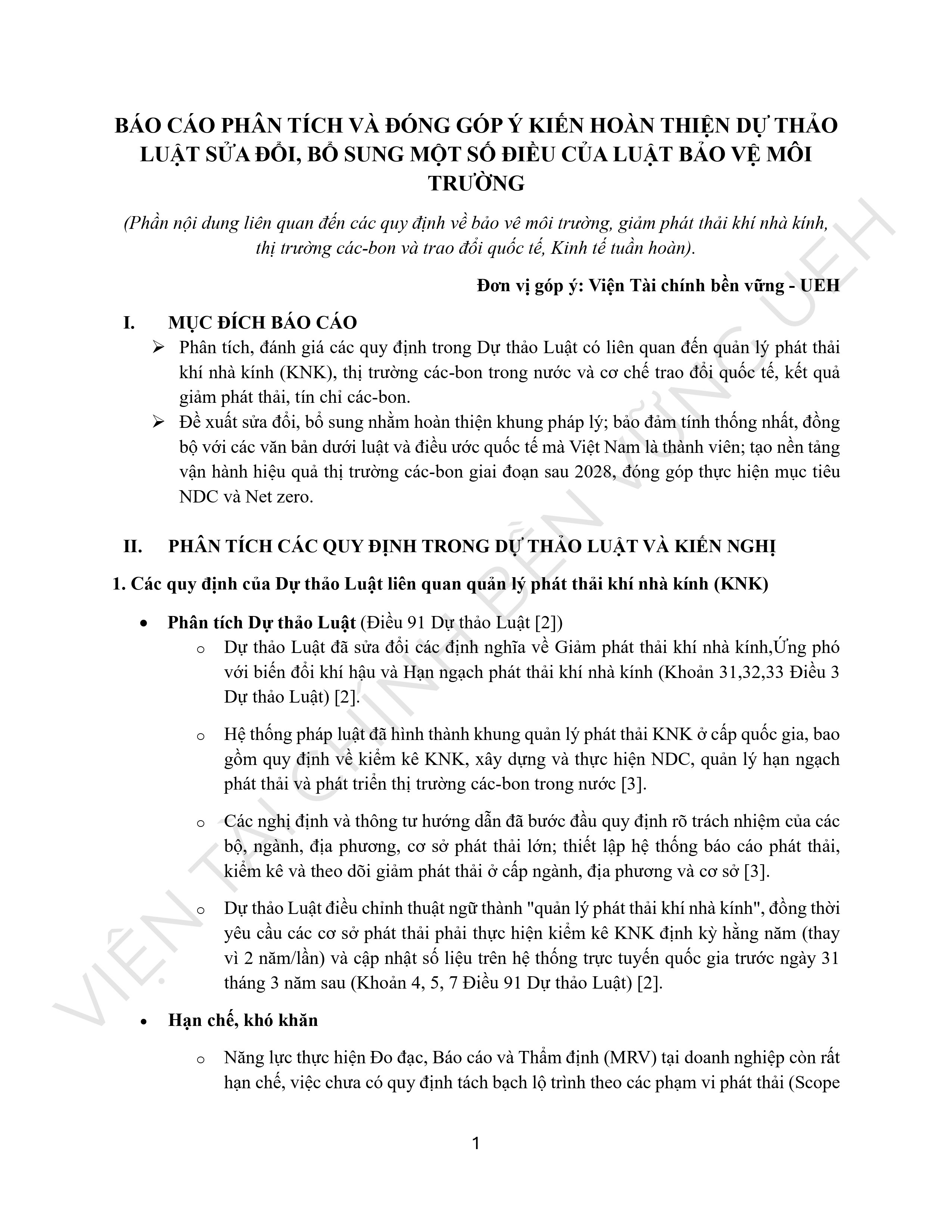 Report on Analysis and Recommendations for Finalizing the Draft Law Amending and Supplementing a Number of Articles of the Law on Environmental Protection of Vietnam